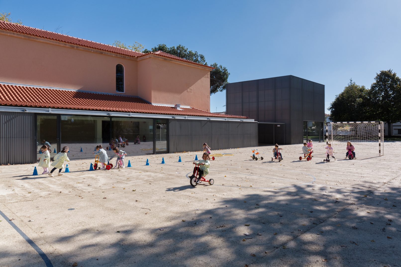 O lote inscreve o volume oblongo da escola original e uma vasta área de recreio, conjunto que o projeto procurou interpretar e repensar, em particular na articulação do novo programa com as áreas disponíveis, e na relação entre o edifício existente e o volume novo, que absorve as novas valências de polivalente e biblioteca.